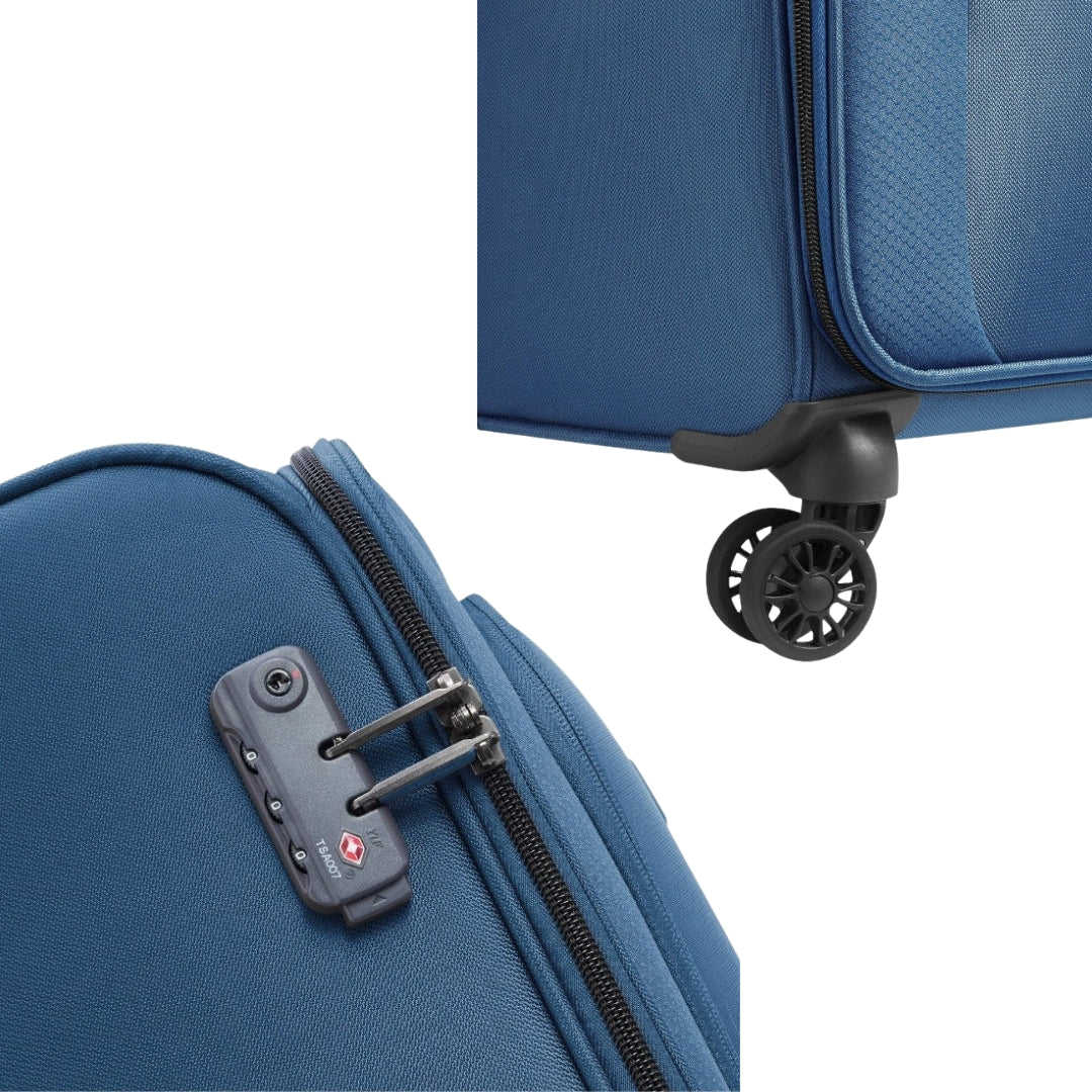 • Effortless Maneuverability: Features 4 double-spinner wheels that rotate a full $360^{\circ}$, ensuring smooth, silent, and stable movement through busy airports.